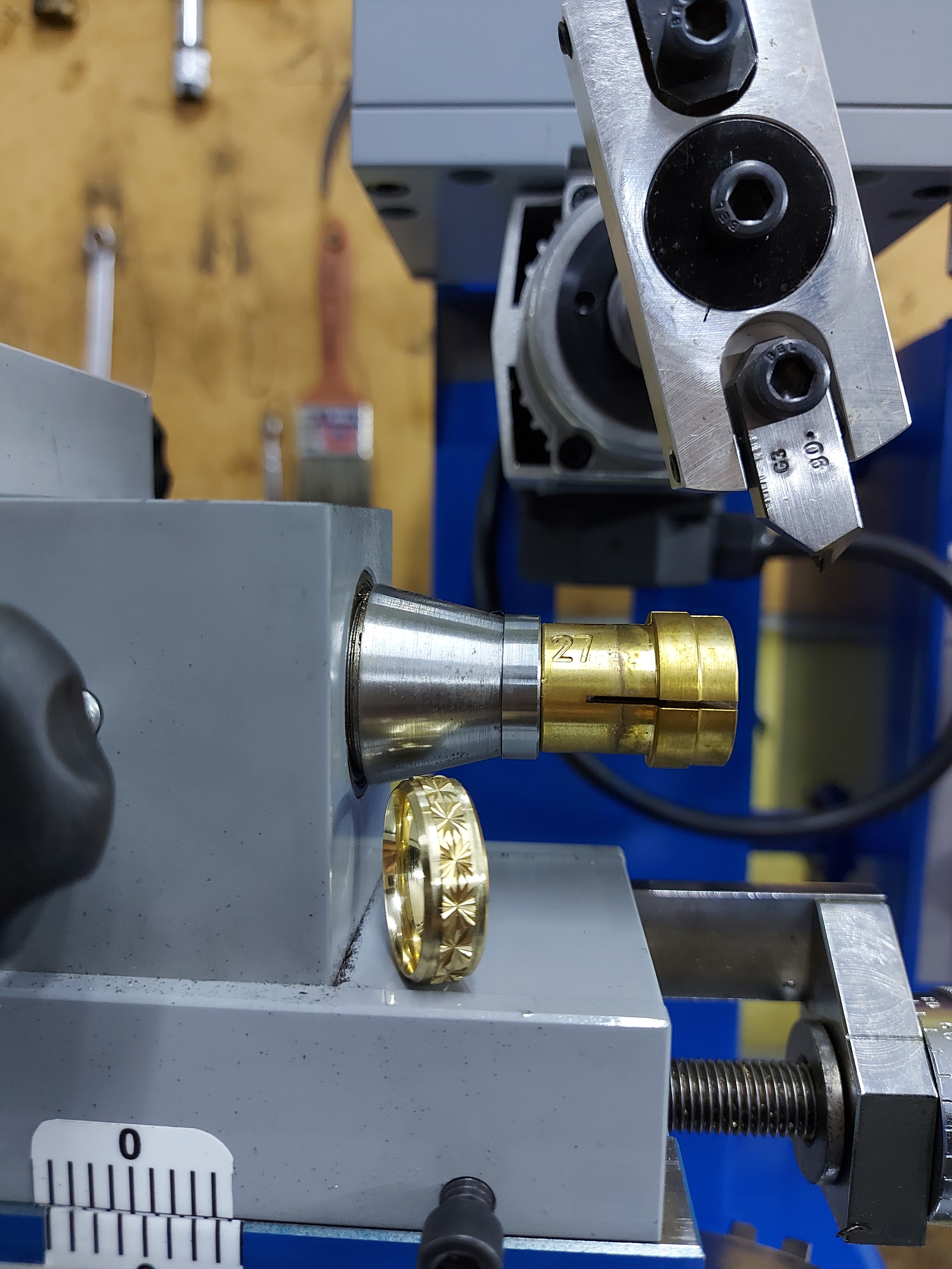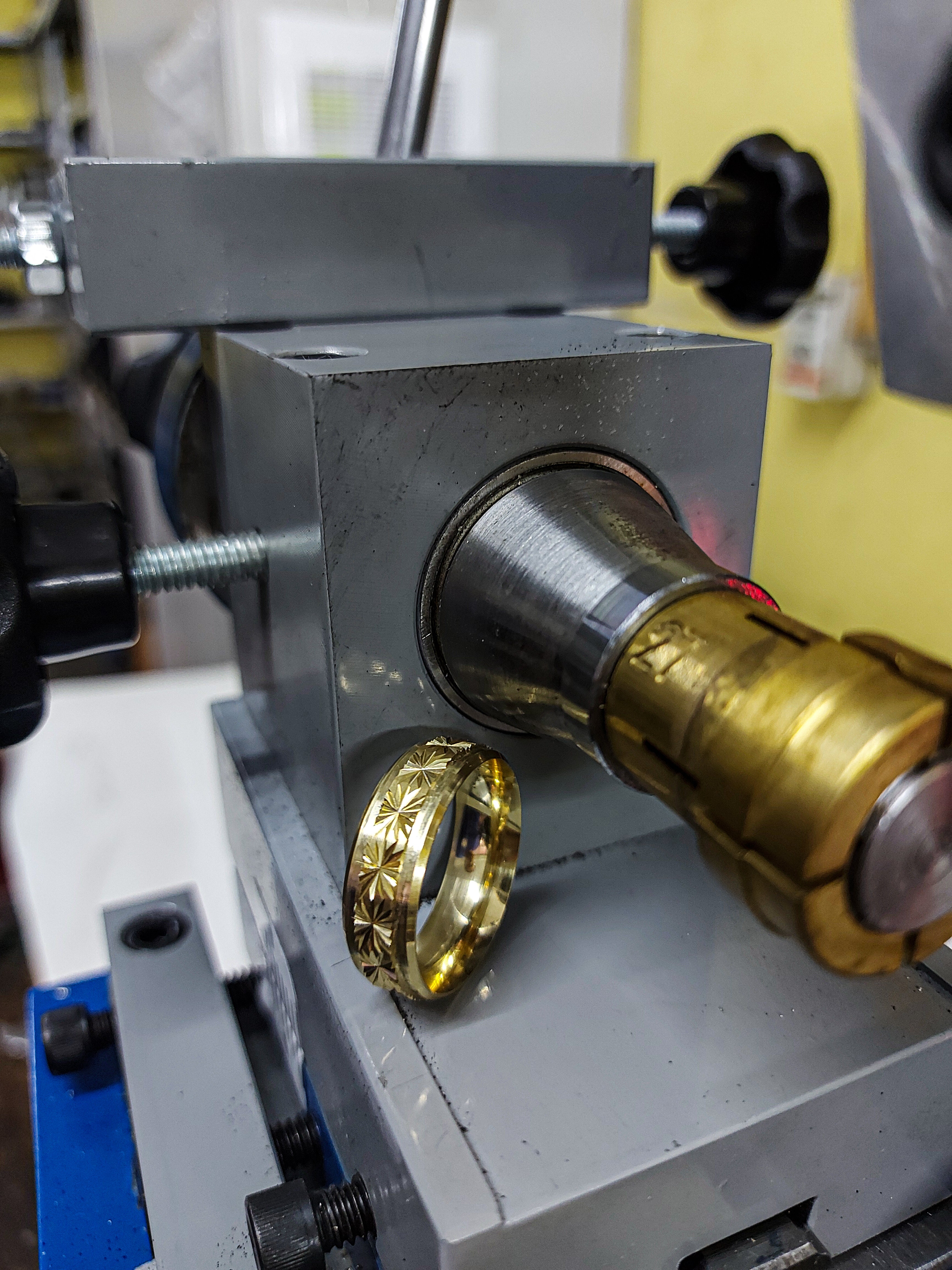 Inclinação de 0° a 45° para a usinagem lateral da aliança.